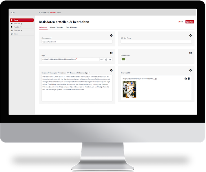 Ihr Firmenprofil zeigt, was Ihr Unternehmen besonders macht – dynamisch, informativ und in den Farben Ihrer Marke. Sie präsentieren Ihre Leistungen, Projekte, Kompetenzen und Kennzahlen, visuell unterstützt und mobiloptimiert auf baublatt.ch und/oder batimag.ch.